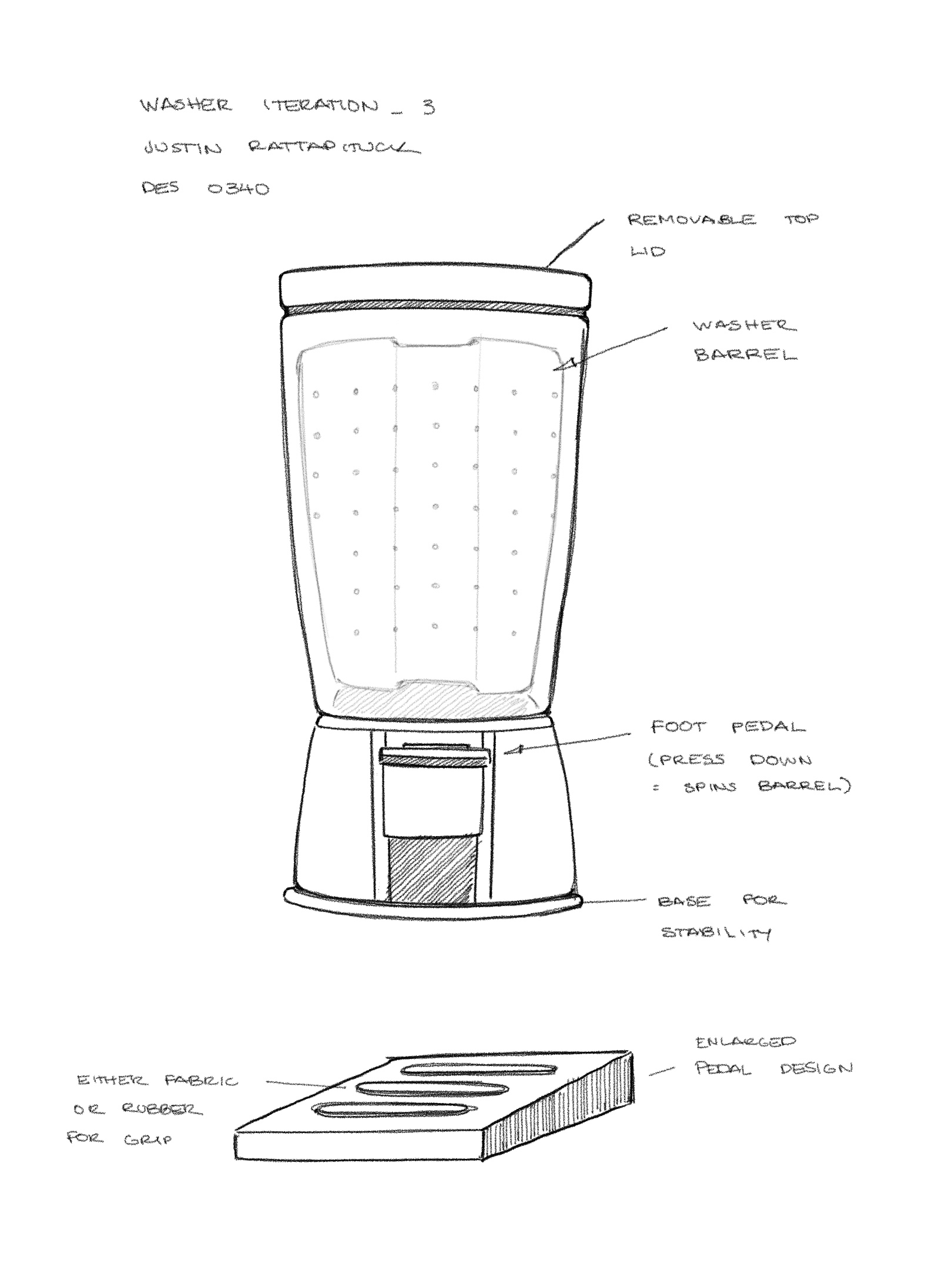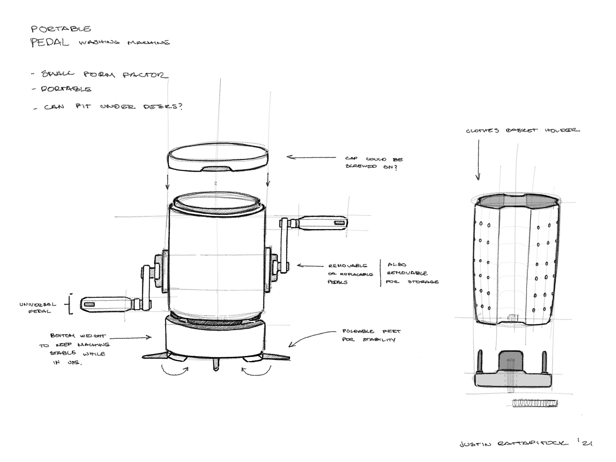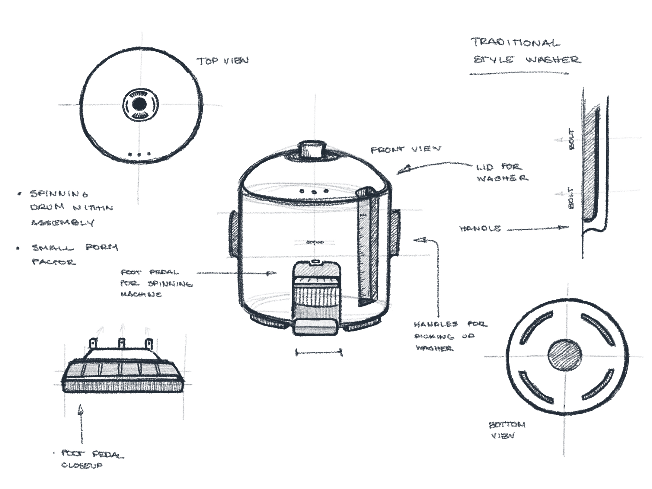 One of the primary concepts that emerged during the development of the portable washer was to design a unit that could be easily transported and used in a wide range of spaces.