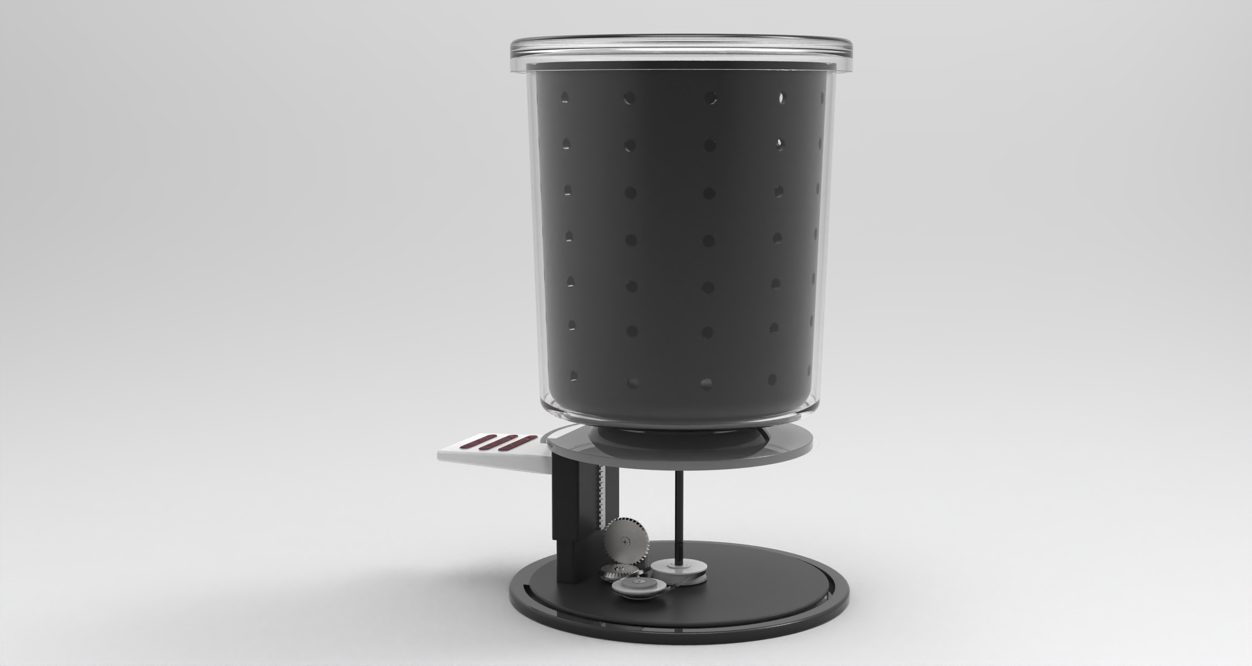 Inspired by the small "trash can shape," in order to achieve a compact footprint.